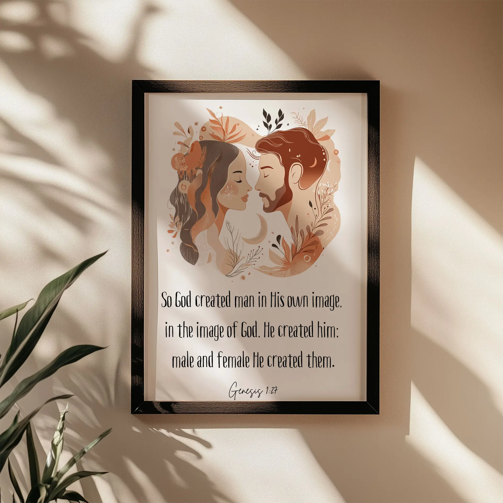 Celebrate the beauty of God’s original design with this touching Genesis Biblical Wall Art, inspired by Genesis 1:27.